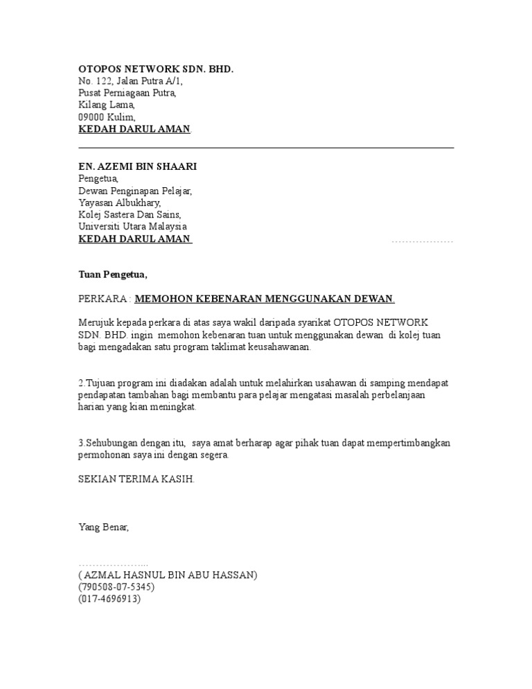 Contoh Surat Pengeluaran Wang Doc